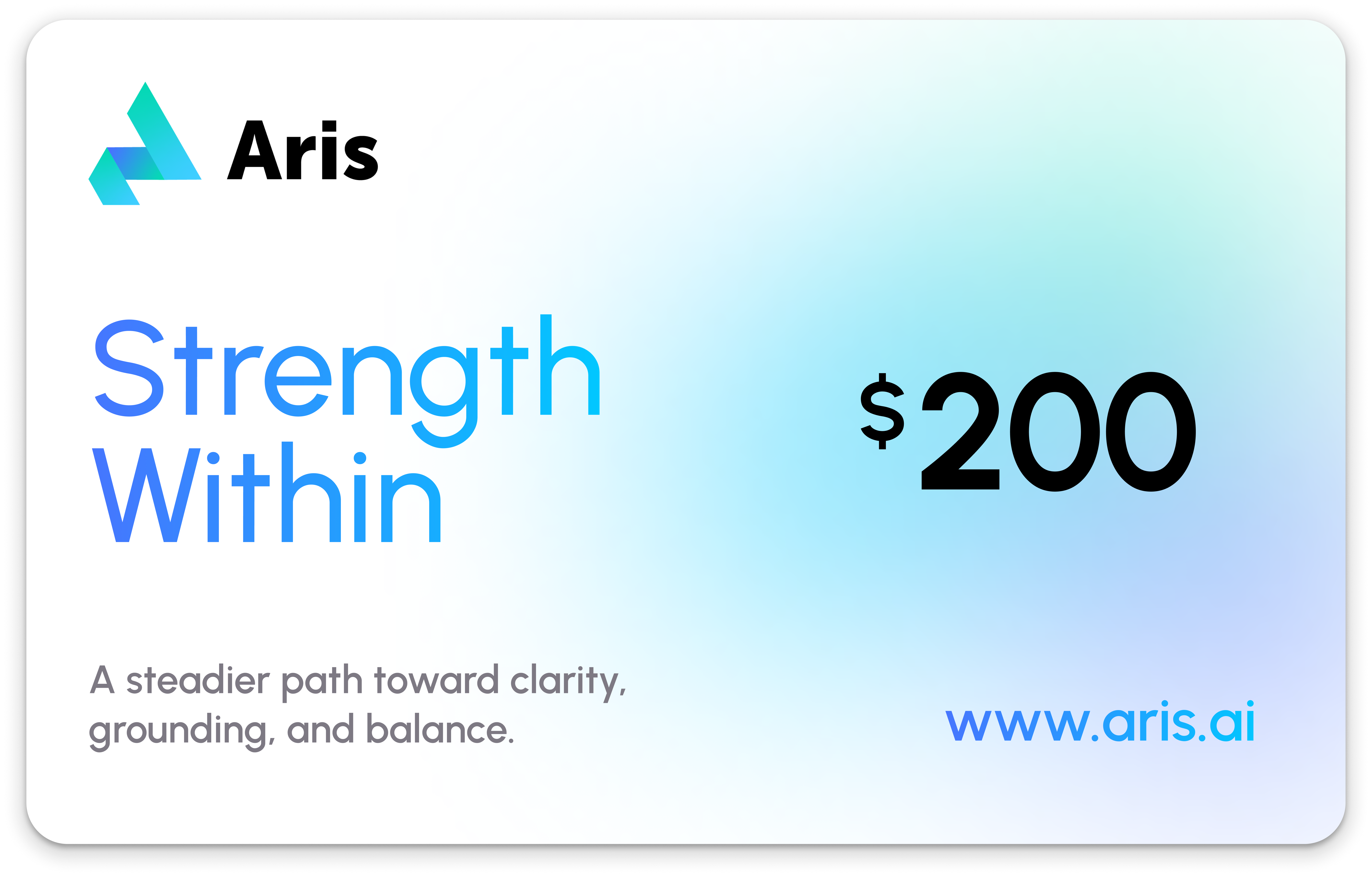 An Aris Gift Card is more than a present. It’s an invitation to find your center. Designed to support balance, clarity, and meaningful connection — in every aspect of life.